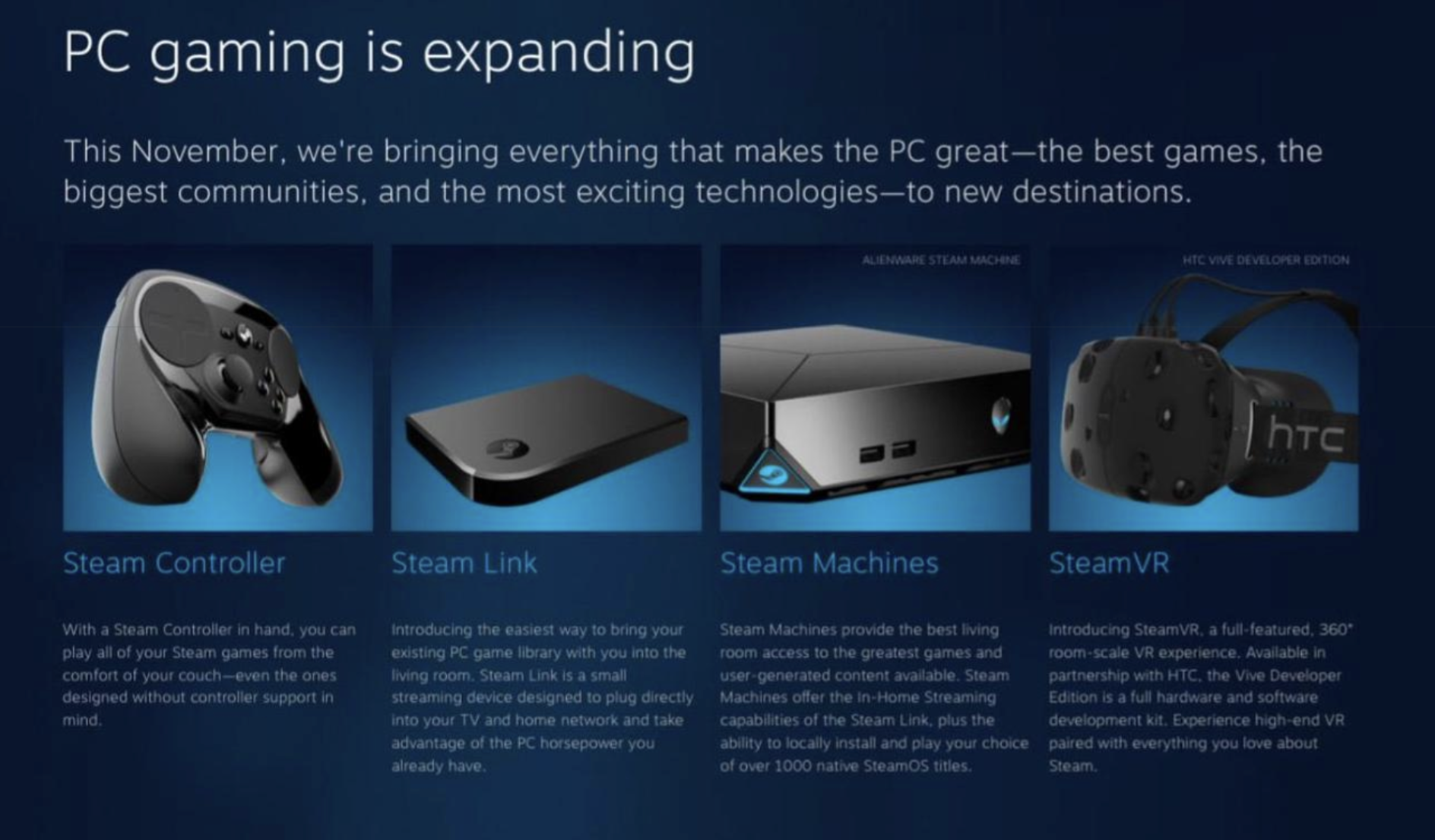 Valve(Steam 平台的公司)從上個月就開始釋出吊人胃口的消息,用很 Valve 的作風輕鬆宣布:「嘿,我們一次公開三款重量級新產品,你們自己想辦法消化。」連帶許多大小媒體紛紛報導,這三個象徵著 Steam 新宇宙的產品,分別是: