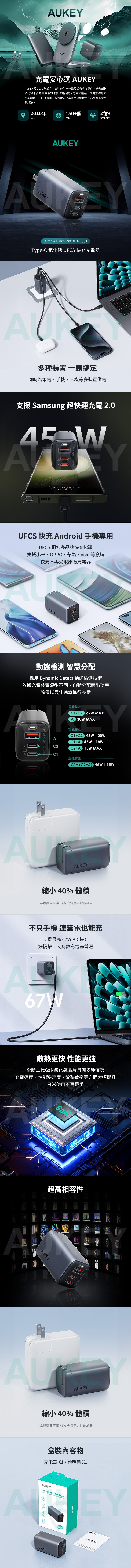 支援UFCS、PD、PPS充電協定,67W大輸出功率,對應高階筆電所需。