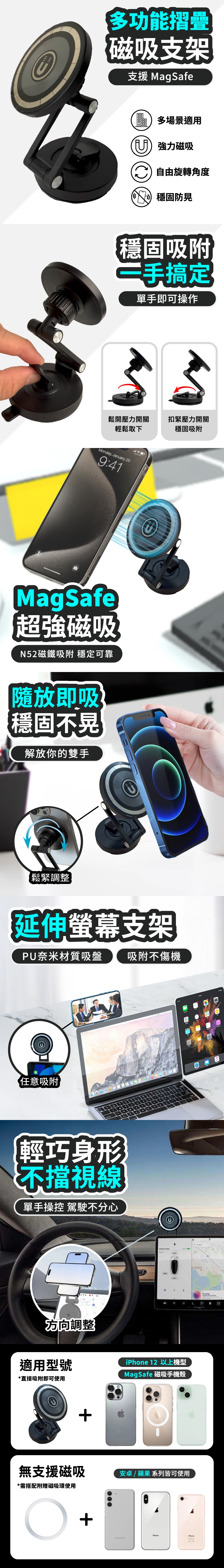 ✅適用所有機型(無支援 MagSafe 的機型,也可搭配附贈的引磁圈黏貼於手機殼上再做使用)