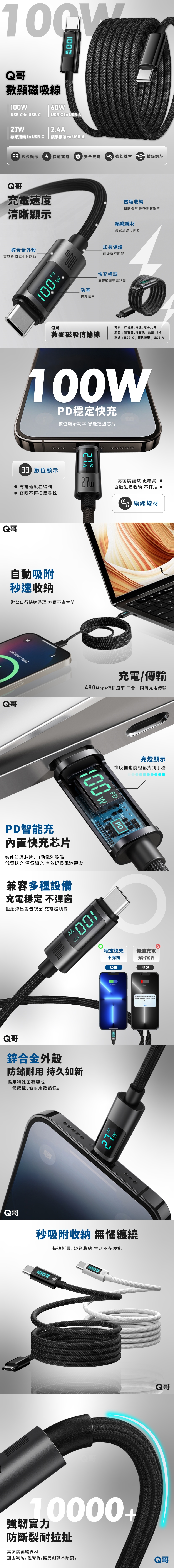 包裝盒內容物: 數顯磁吸收納傳輸線 x1