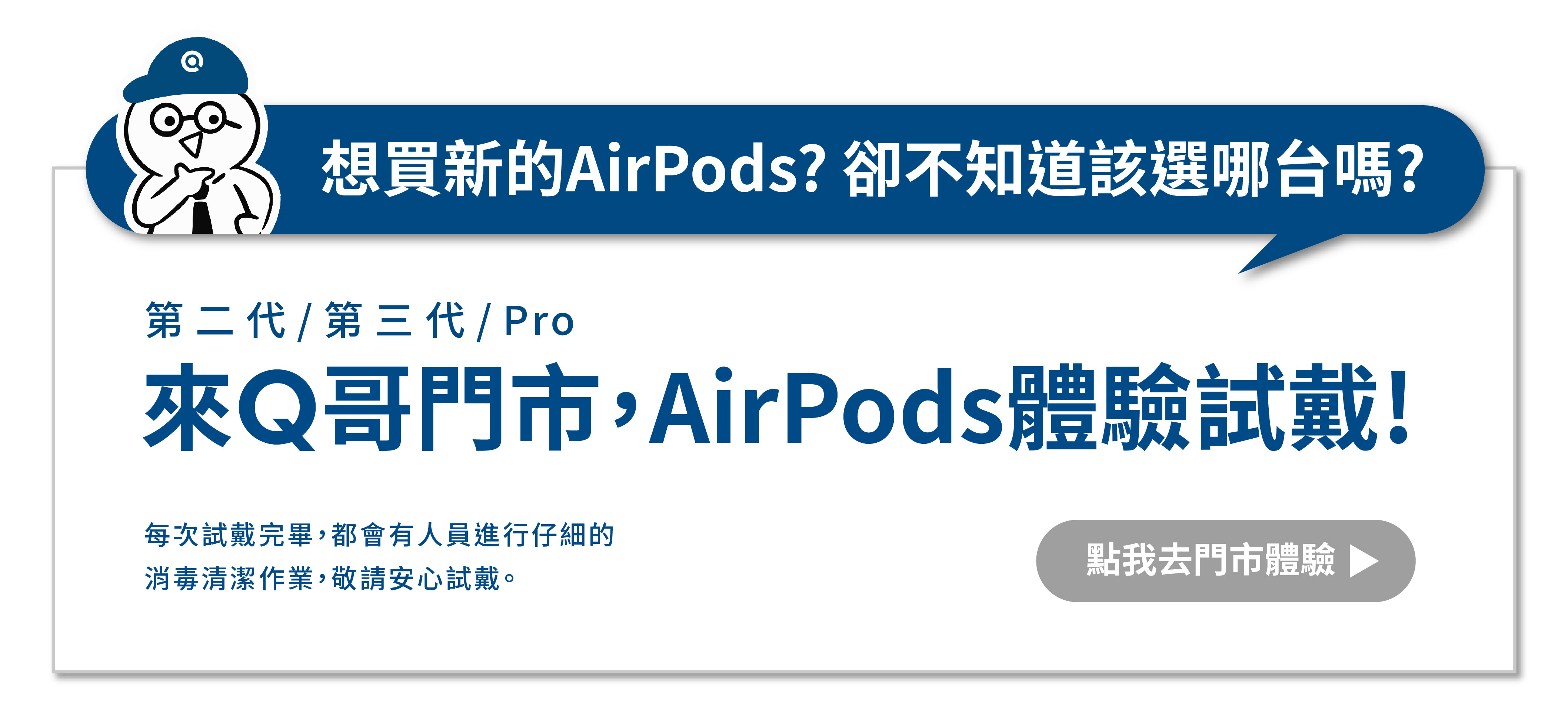 Q哥提供免費、安全、乾淨的AirPods 2、AirPods 3、AirPods Pro免費試戴服務