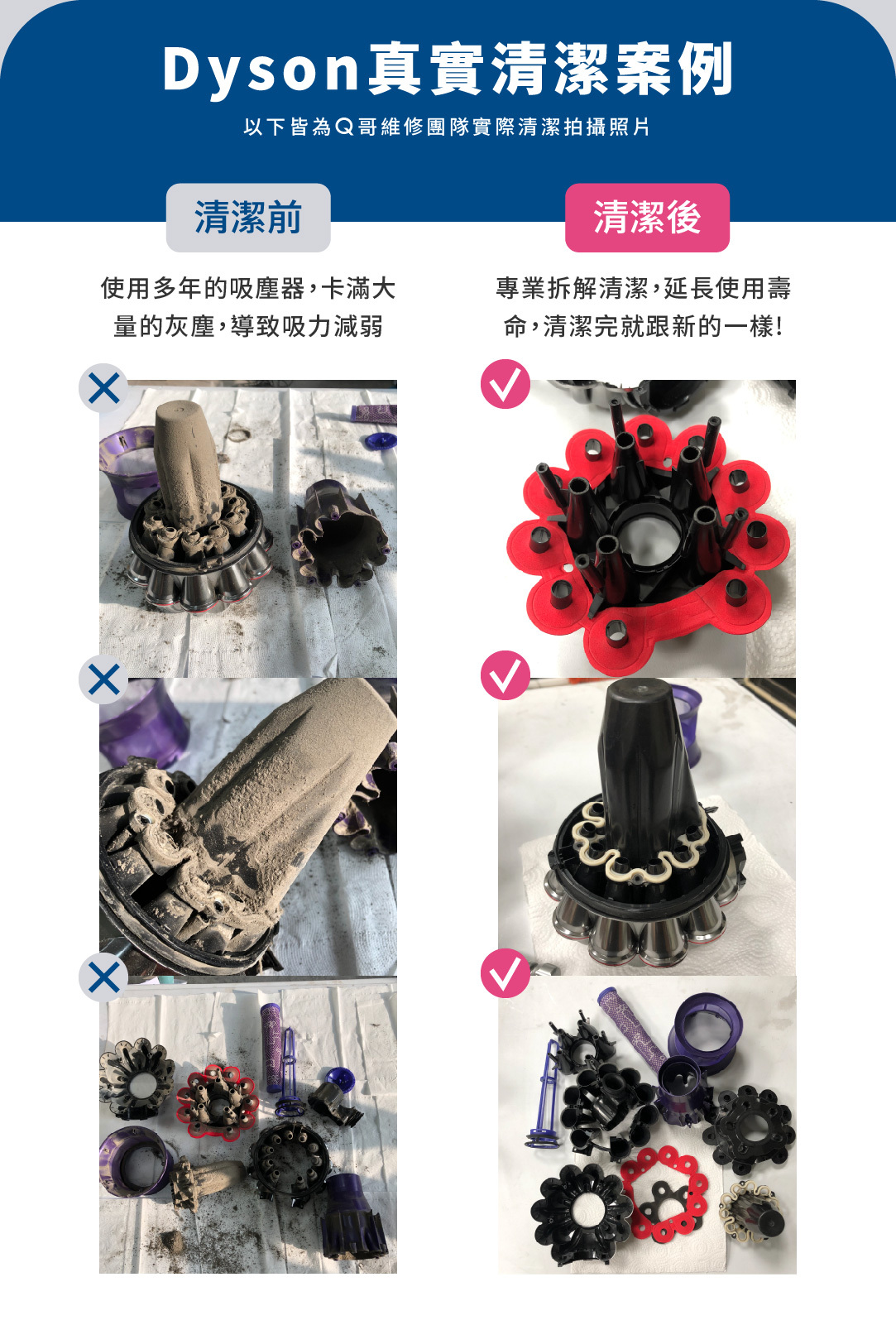 Q哥 Dyson清潔 維修 保養 馬達損壞 電池老化 主體清潔