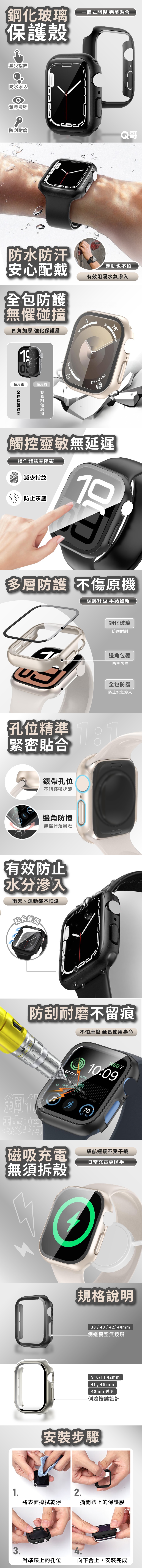 品名:鋼化玻璃一體式 Apple Watch 防水錶殼