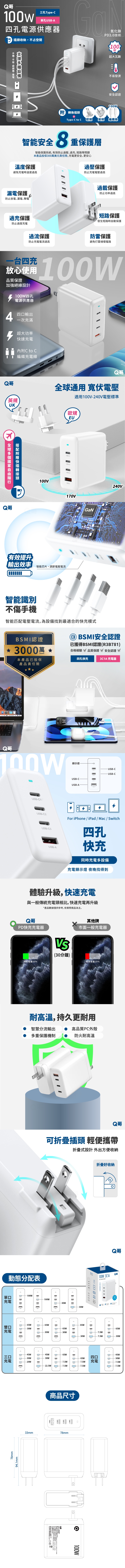 ✦ 多孔設計 四孔輸出,單孔最高輸出 100W。