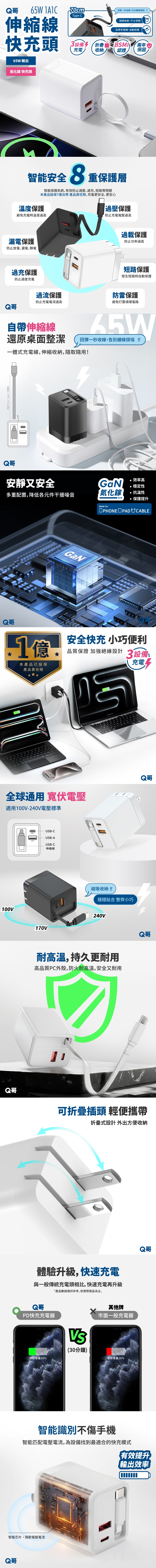 【65W】氮化鎵 自帶線折疊1A1C充電器