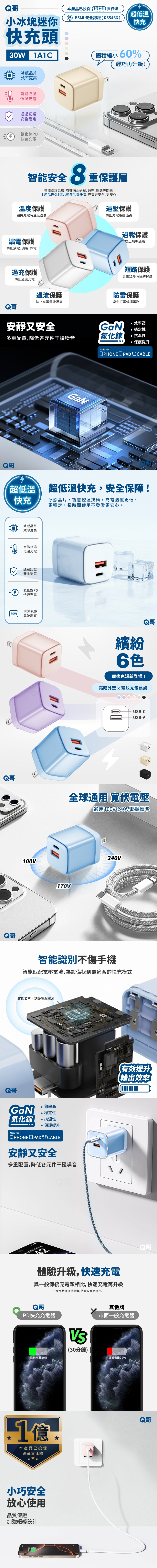 產品名稱:Q哥 30W 氮化鎵 小冰塊迷你電源供應器
