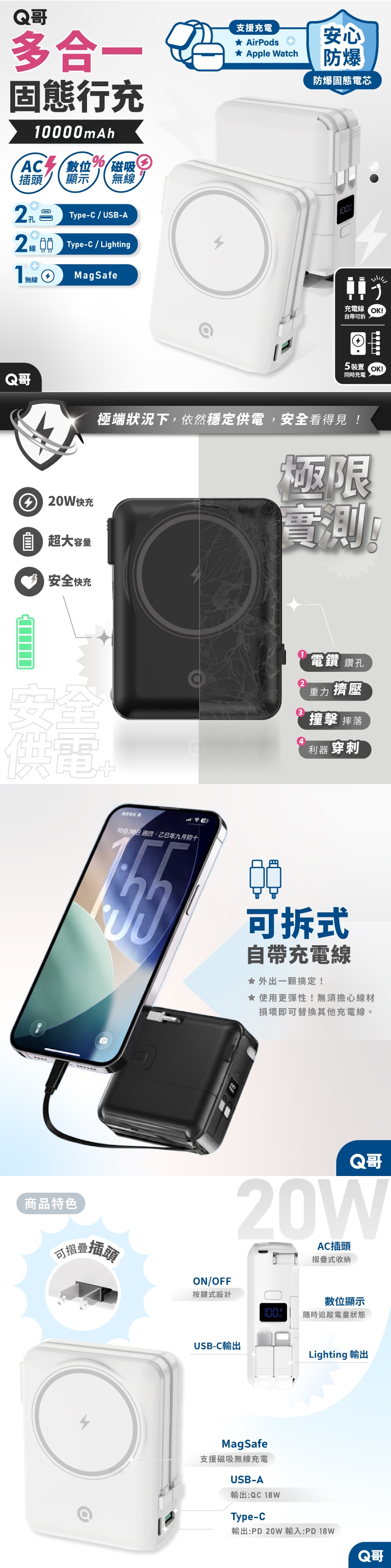 ✦ 多口輸出模式:Type-C1+Type-A+Type-C線+Lighting線