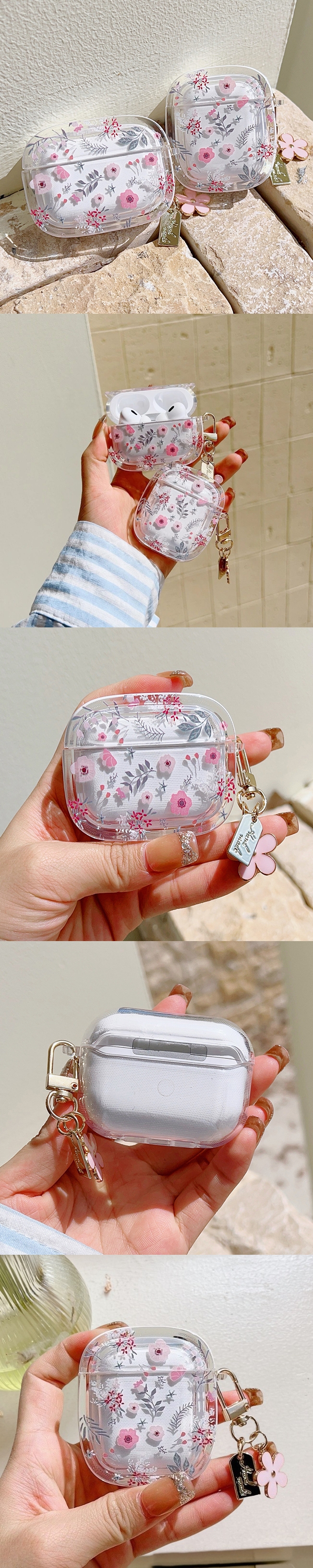 包裝盒內容物:粉系小碎花透明耳機殼 x1 掛飾 x1