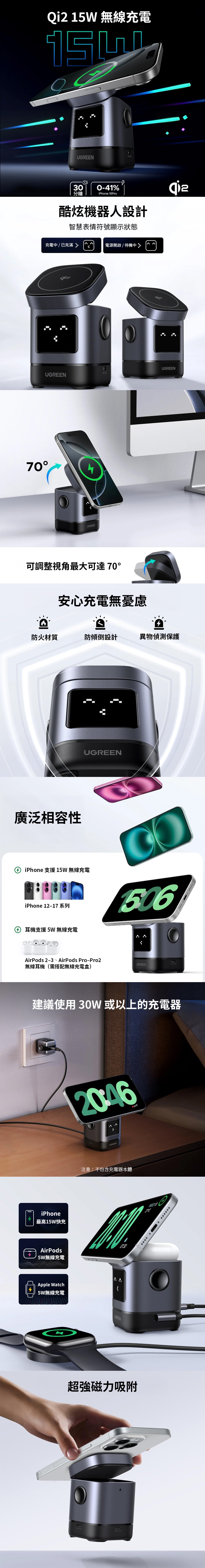 品名:小機器人 Qi2 認證 15W 2合1 無線充電座