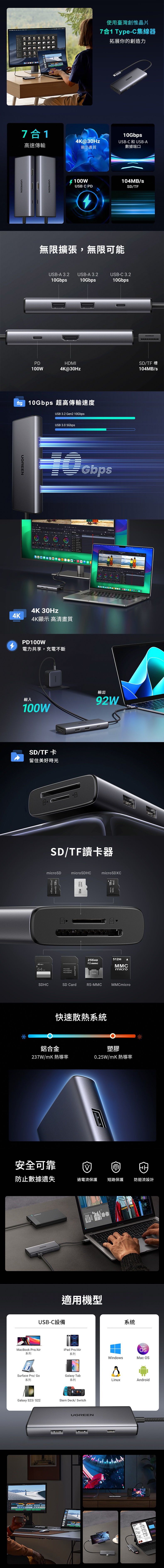 品名:七合一Type-C集線器 10Gbps高速傳輸版