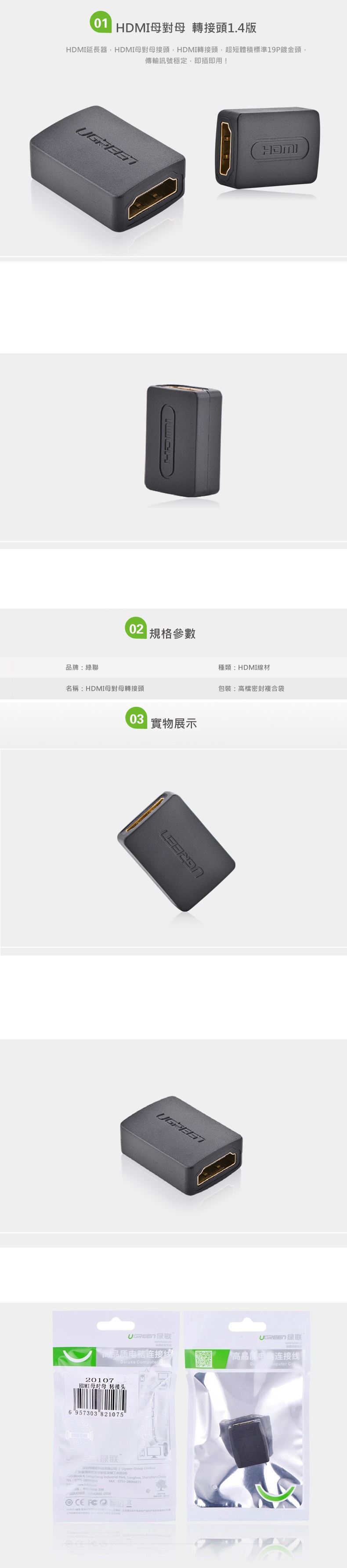 包裝盒內容物:HDMI母對母 延長對接頭 x1