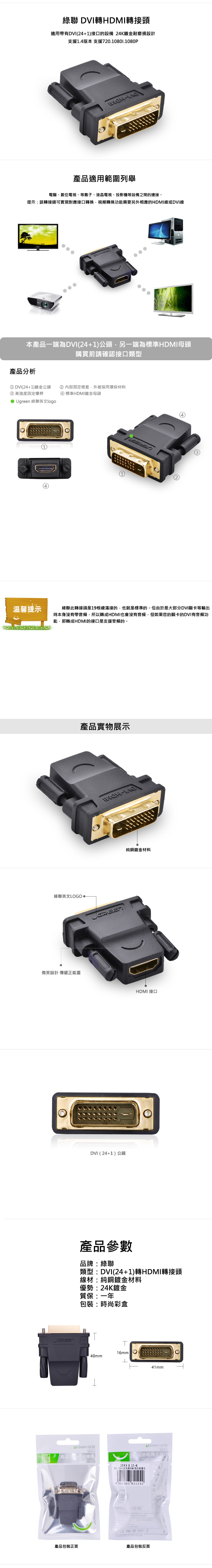包裝盒內容物:DVI-D(24+1)轉HDMI轉接頭 x1