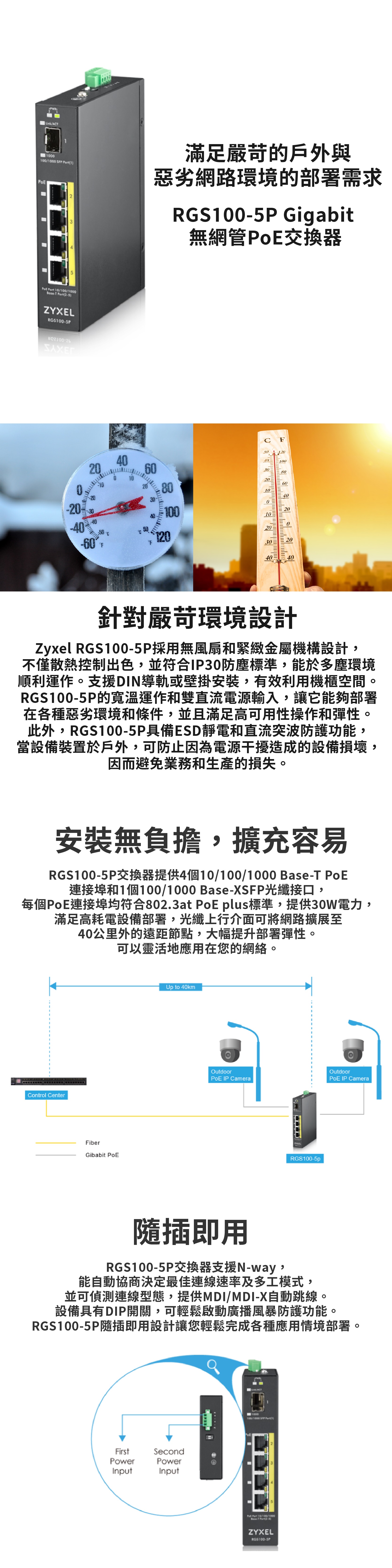 ●電源輸入: 雙電源輸入 12V~58VDC (PoE/PoE+ requires minimum 48/54V DC)
