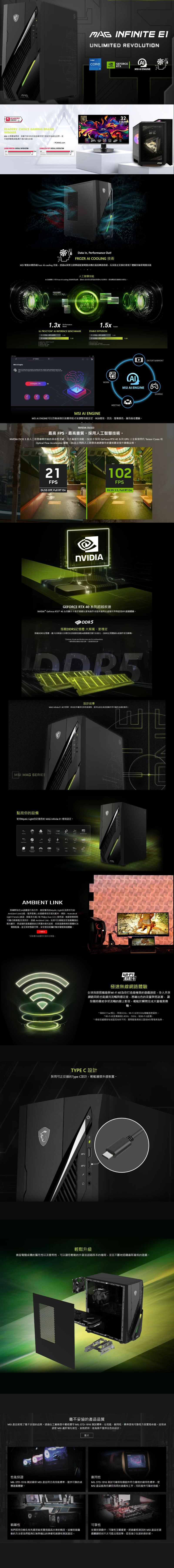 商品名稱:MAG Infinite E1 12-008TW-B51240F16GS1TX11MHAH1 + RTX4060Ti