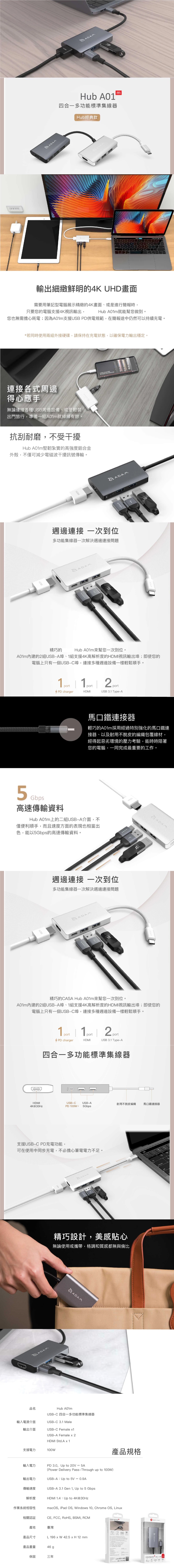 ✦ 包含標準兩個USB 3.1,一個HDMI輸出,一個Type-C PD埠