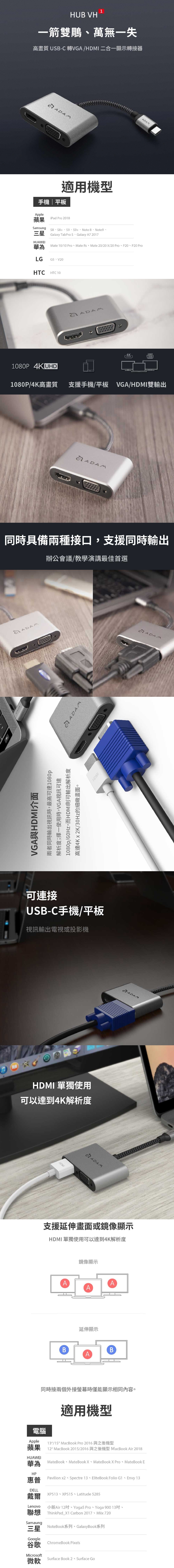 ✦ 可同時輸出VGA /HDMI到顯示器、電視或者投影機