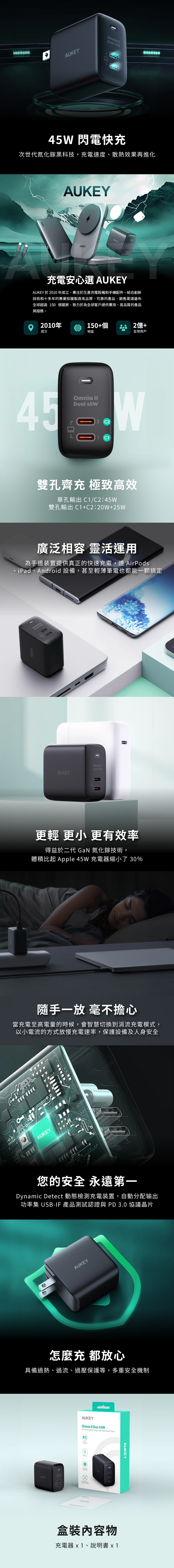 2C實用配置,2孔同時輸出,結合智慧檢測提供最佳充電效率