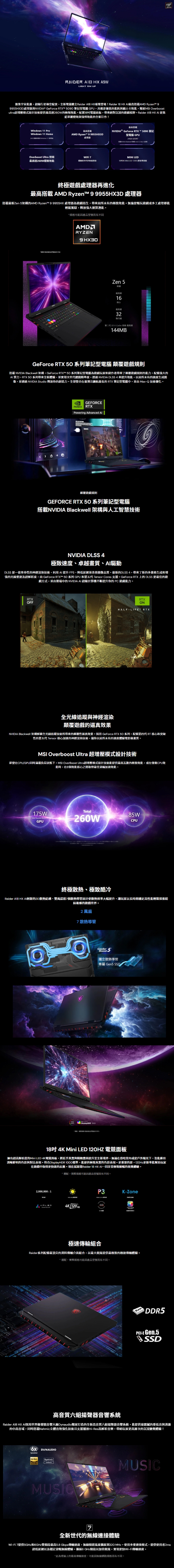✦ 搭載 NVIDIA® GeForce RTX™ 5090 Laptop GPU 24GB GDDR7 筆記型電腦GPU
