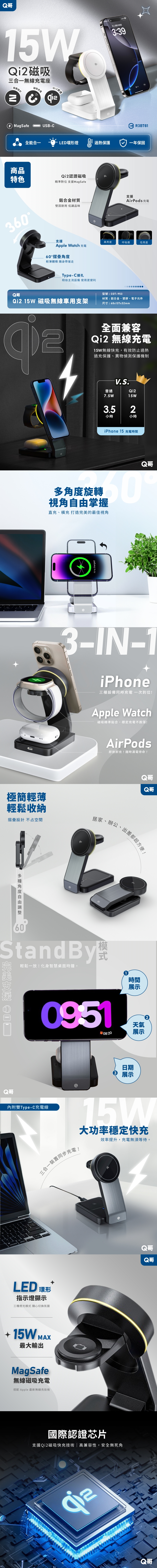 搭載Qi2最新無線充技術!支援 MagSafe!安全快速充電!