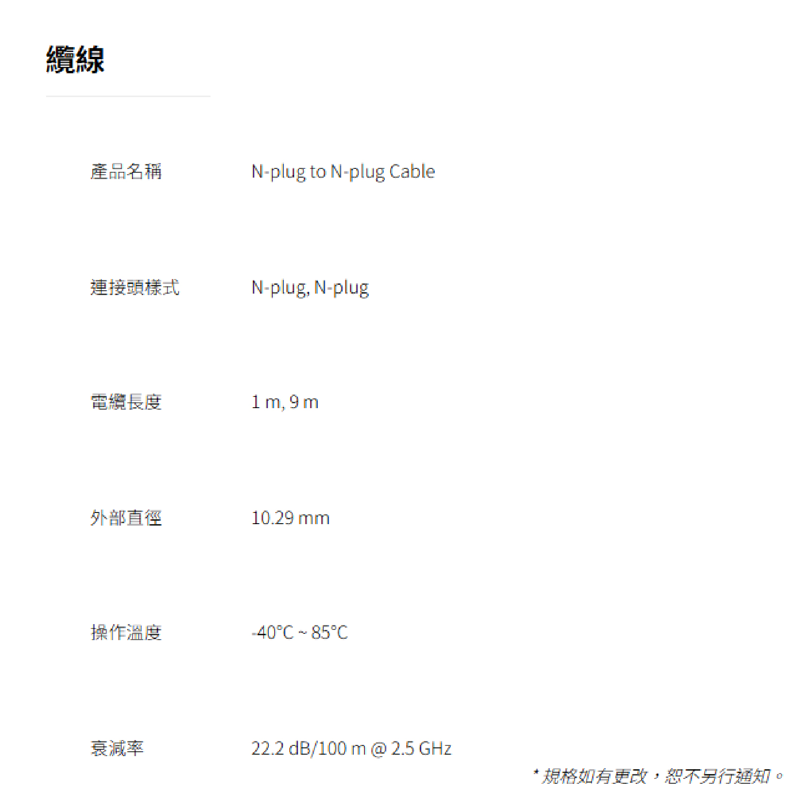 衰減率:22.2dB / 100m @ 2.5GHz